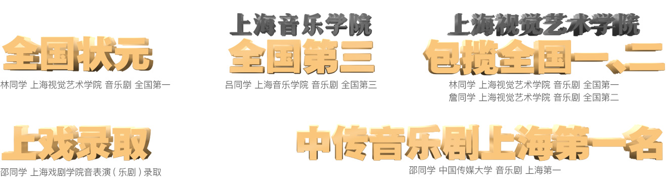 2022年林同學錄取于北京舞蹈學院音樂劇專業,方同學錄取于中國傳媒大學表演(音樂劇雙學位)專業,邵同學錄取于上海戲劇學院表演(音樂劇專業),吳同學、孫同學錄取于中央戲學院表演(音樂劇)專業。